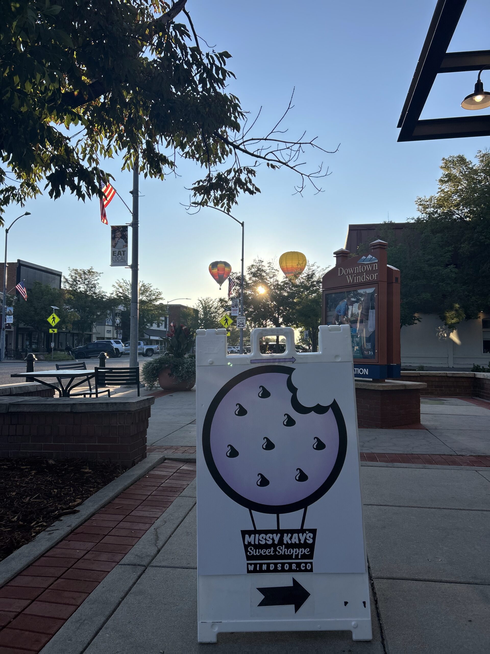 Our “Cookie Balloon” logo represents the Windsor community, and the countless mornings you walk out and are greeted by hot air balloons floating by. Plus, the hot air balloon rally during the annual Windsor Harvest Festival is a must-do tradition for us Windsorites!