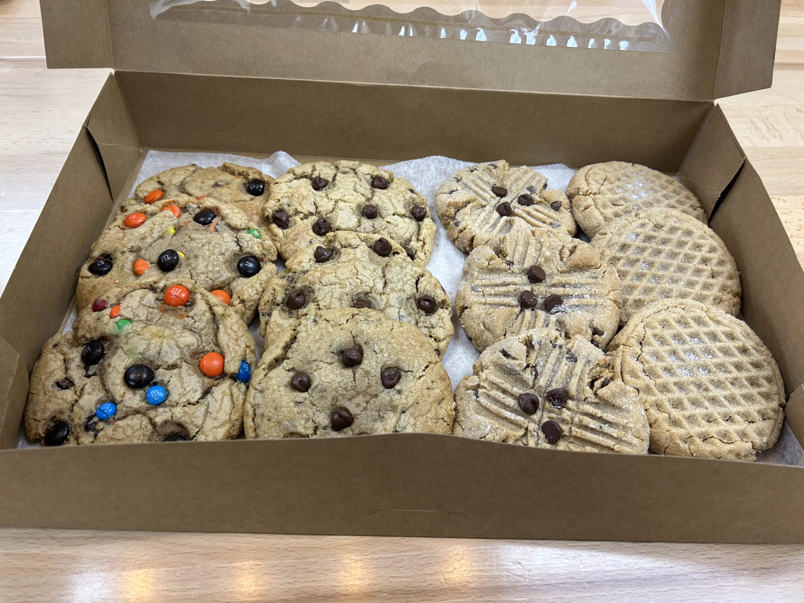 We have fresh baked cookies that we bake on-site in our Cookies Kitchen! We have Chocolate Chip, Peanut Butter, M&M Cookies, Peanut Butter Chocolate Chip, Snikerdoodle and more! We are always trying out new cookies and coming up with something new and fun!
